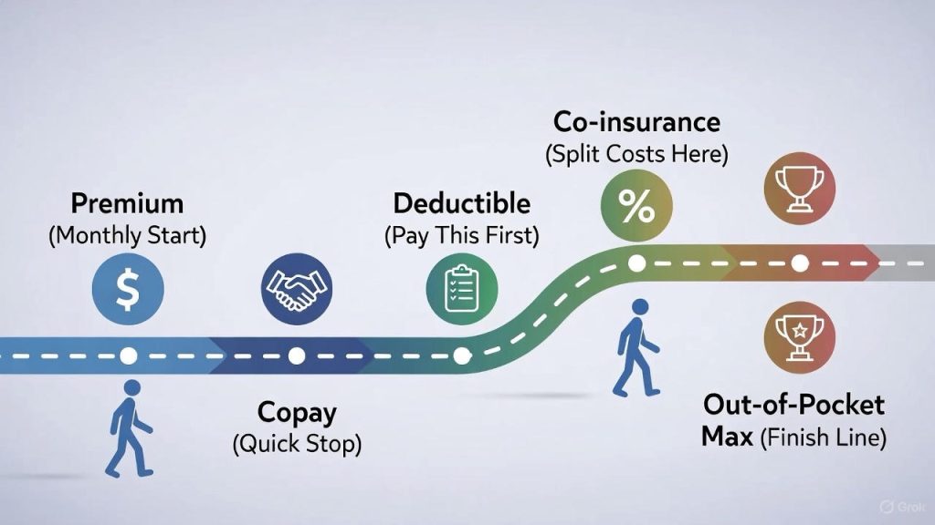 Think of these four terms as a series of doors you pass through in a plan year. Your expenses move through them in a specific order, and understanding this flow is the key to predicting your costs.