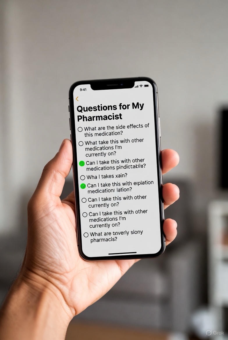 You have a right to counsel. Simply say: “I have a few questions about this new prescription. Is there a time I could speak with the pharmacist?” You can pick up the medication and park to go inside, or they may call you. Avoid peak hours (lunchtime, after-work) for a more relaxed conversation.