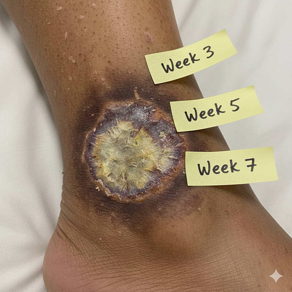 · No Visible Progress: Shows no signs of shrinkage or new tissue growth over weeks.