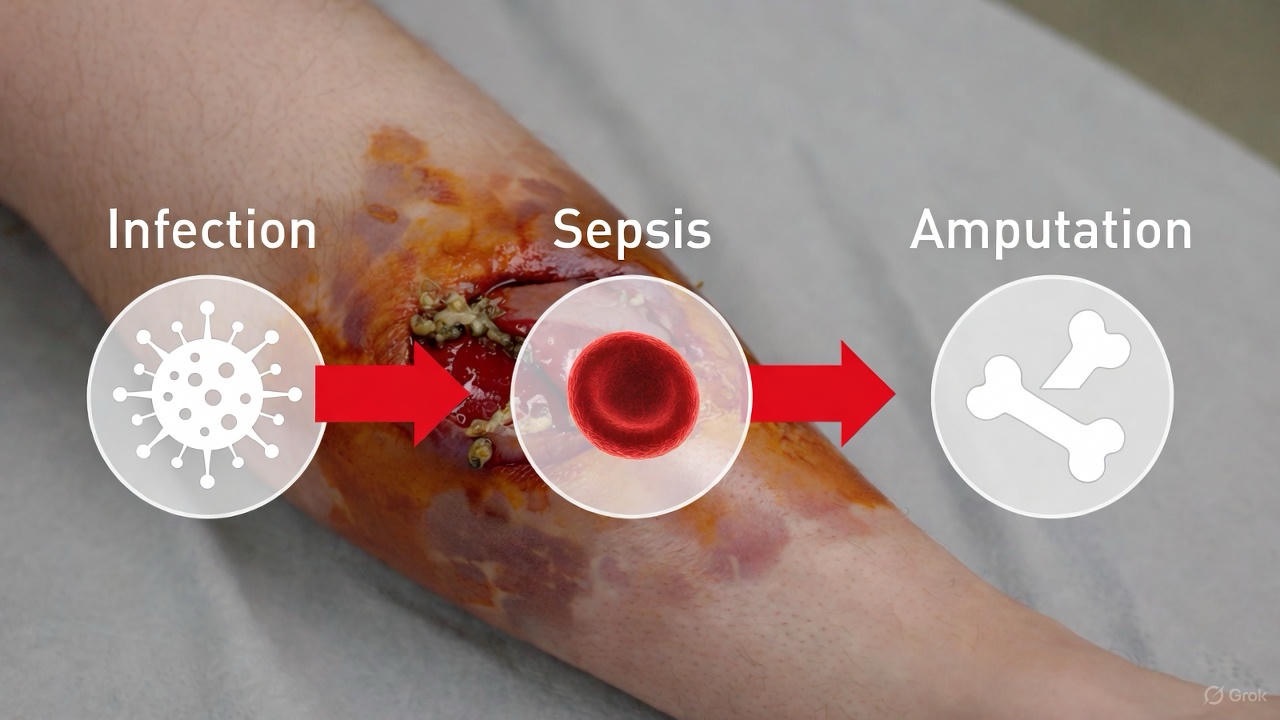 Chronic wounds are a portal for serious infection, including cellulitis, bone infections (osteomyelitis), and sepsis. The longer a wound remains open, the higher the risk.