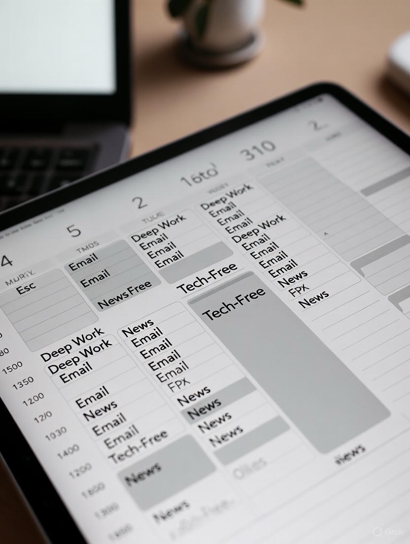 · Implement “Deep Work” blocks: 90-120 minute periods where devices are on airplane mode or in another room.