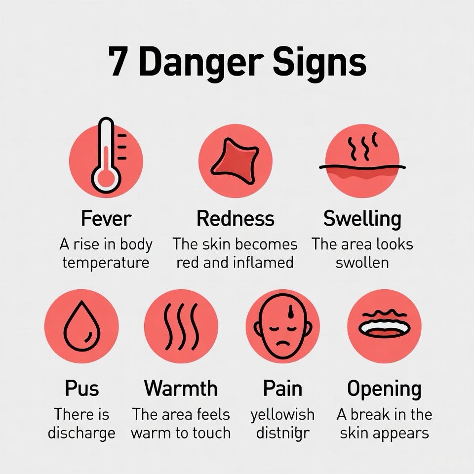 4. Pus or Unusual Drainage: Yellow, green, thick, or foul-smelling discharge.