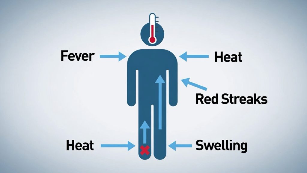 A systemic sign that the infection may be spreading. If you develop a temperature of 100.4°F (38°C) or higher, chills, or general malaise, your body is signaling a fight that requires medical backup.