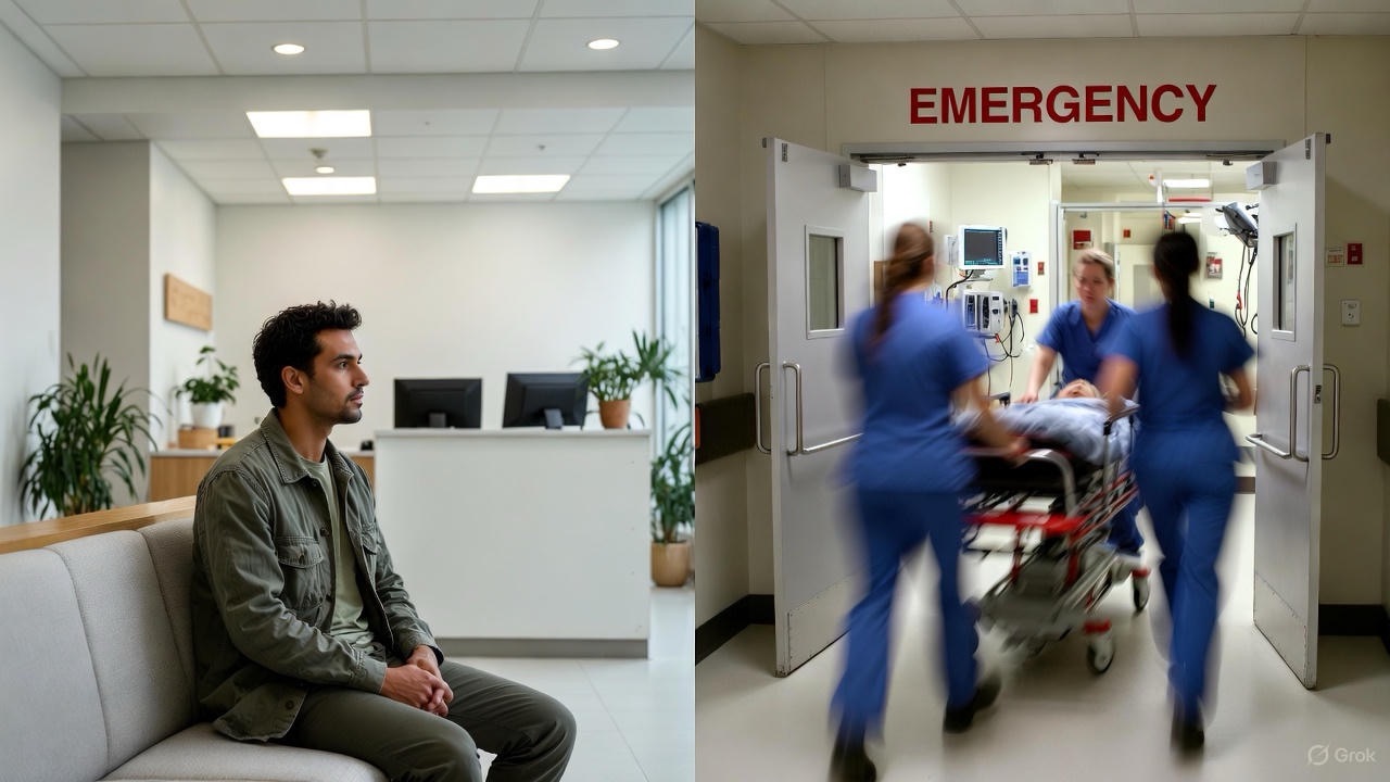 Answer: It’s significant. Urgent Care average wait: 15-45 minutes. ER average wait: 2-6 hours (triage prioritizes the sickest patients, so if you’re there for a minor issue, you will wait). Remember: in the ER, waiting is often a sign that your condition is less critical—which is a good thing.