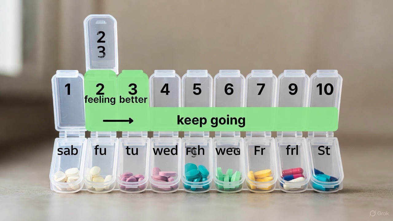 Feeling better means the medication is working and has killed the most vulnerable bacteria. However, the toughest bacteria may still be lingering. Stopping early allows these survivors to recover, multiply, and cause a relapse that is harder to treat. The full course is designed to ensure complete eradication.