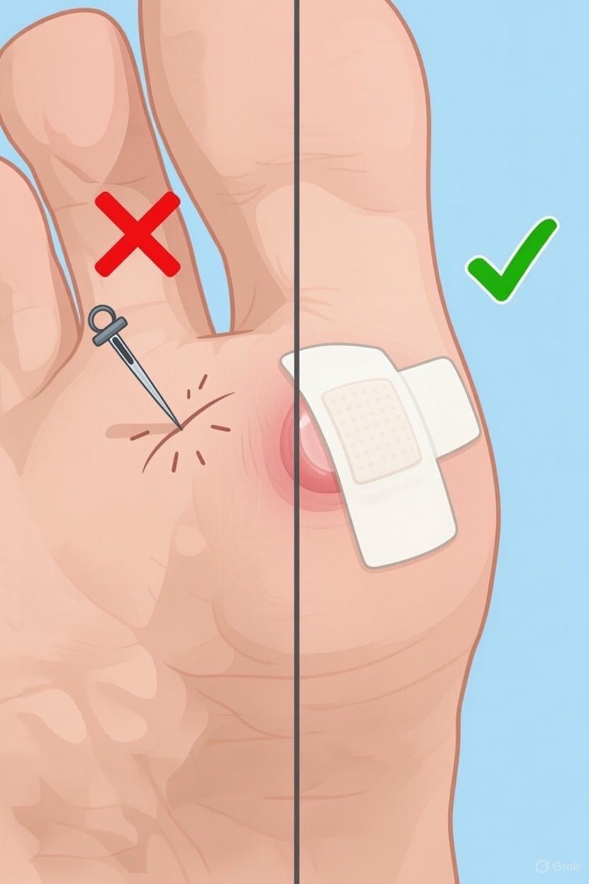 · Cover it securely with a blister-specific bandage or tape (like kinesiology tape or moleskin).