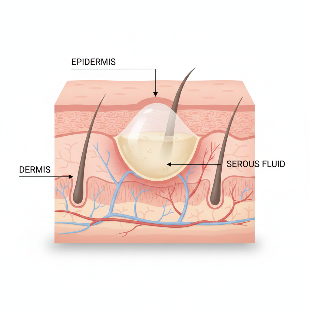 A blister is a small pocket of fluid that forms in the upper layers of the skin. It’s your body’s natural bandage—a cushion of serous fluid (or sometimes blood, if capillaries are damaged) designed to protect the underlying tissue from further damage and give it time to heal. Friction is the usual culprit, but burns, allergic reactions, and infections can also cause blisters.
