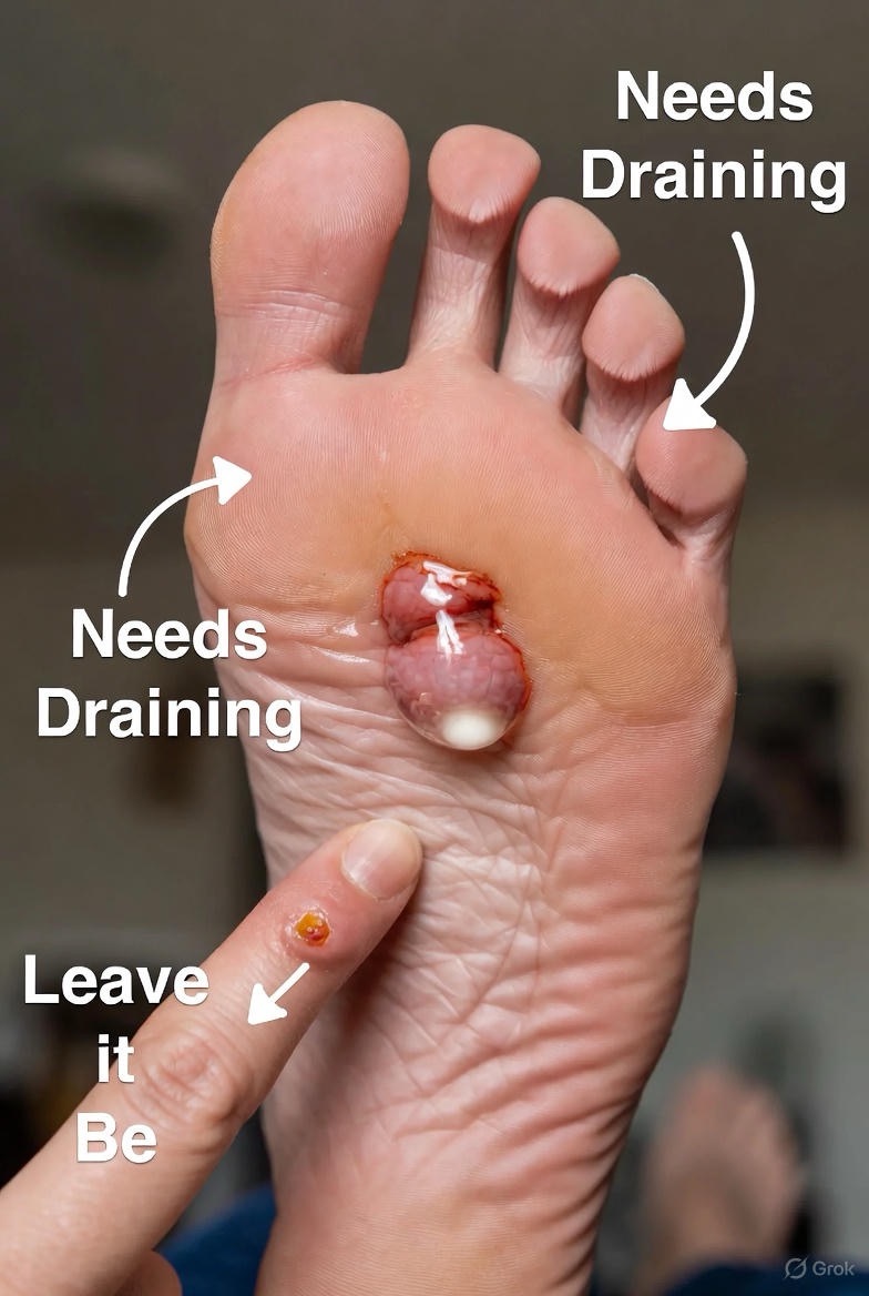 Sometimes, a blister is so large, painful, or awkwardly placed that it’s likely to burst on its own from pressure. In these cases, a controlled, sterile drainage is safer than letting it rupture unpredictably.